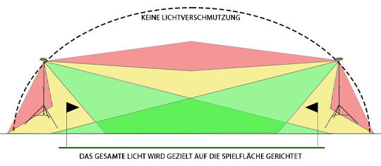 Das gesamte Licht wird auf die Spielfläche gerichtet und bietet eine gleichmäßige Beleuchtung mit optimaler Intensität für das Training.