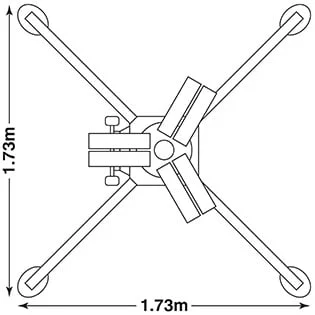 Las 4 patas deben estar desplegadas y aseguradas antes de poder elevar el mástil. Esto evita el despliegue incorrecto e inseguro de la unidad.
