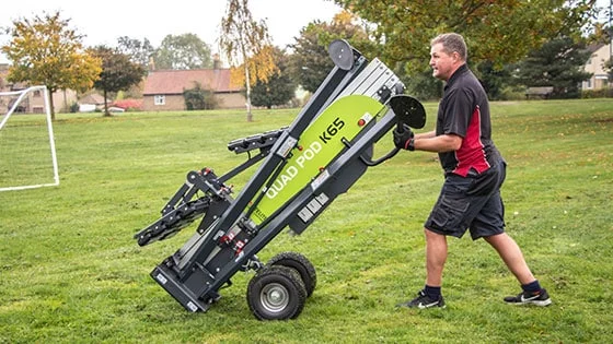Diseñadas para que una sola persona pueda maniobrarlas fácilmente dentro y fuera del campo deportivo sin dañar la superficie de juego. El kit de ruedas de liberación rápida se puede desmontar en segundos y guardar en otro lugar para mayor seguridad.