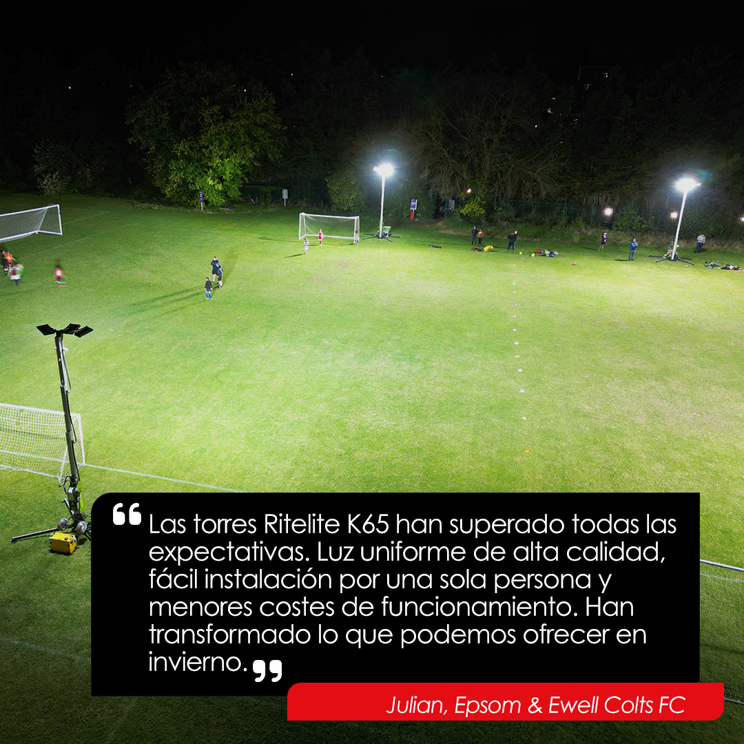 «As a grassroots football club, investing in high-quality lighting is crucial for keeping our teams training throughout the winter months. The Ritelite K65 towers have exceeded every expectation. They provide exceptional, even illumination across the pitch with virtually no light spill, which has been a huge benefit for us and our numerous teams using them at the club.