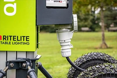 A power source for applications including construction sites, sports fields, and events. Available with either a 110V or 230V output.