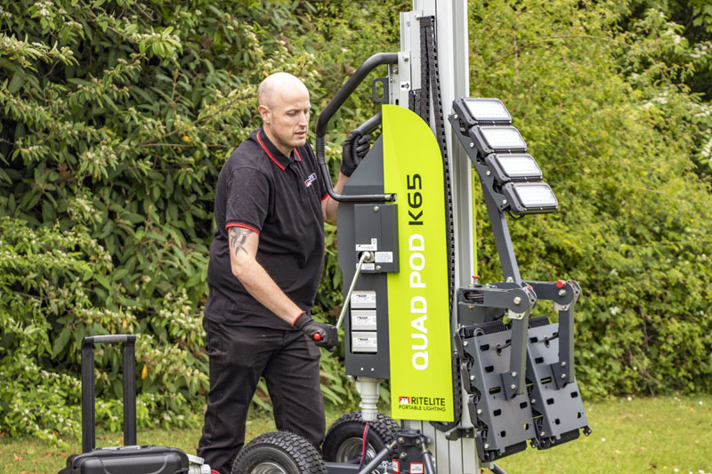 The Quad Pod K65 Mobile lighting towers are designed to focus all the light onto the required surface through bespoke lensing and controlled efficiency. This means that light is not wasted into the sky or spilling out onto neighbouring areas. To find out more about how Riteite’s unique beam control concept works please click here.