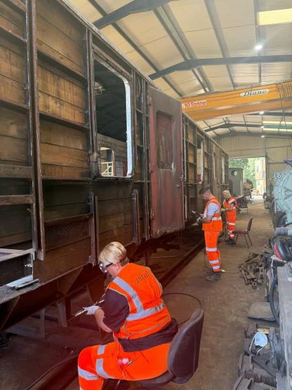 This project represents a fantastic example of collaboration and generous support between companies and the team at Nene valley in man hours volunteering and tools, material and equipment to enable the refurbishment to happen. Once complete, the carriage will also offer a high-visibility platform to recognise their contributions with partner and sponsor logos and the official Railway 200 branding, proudly displayed on the body of the carriage.